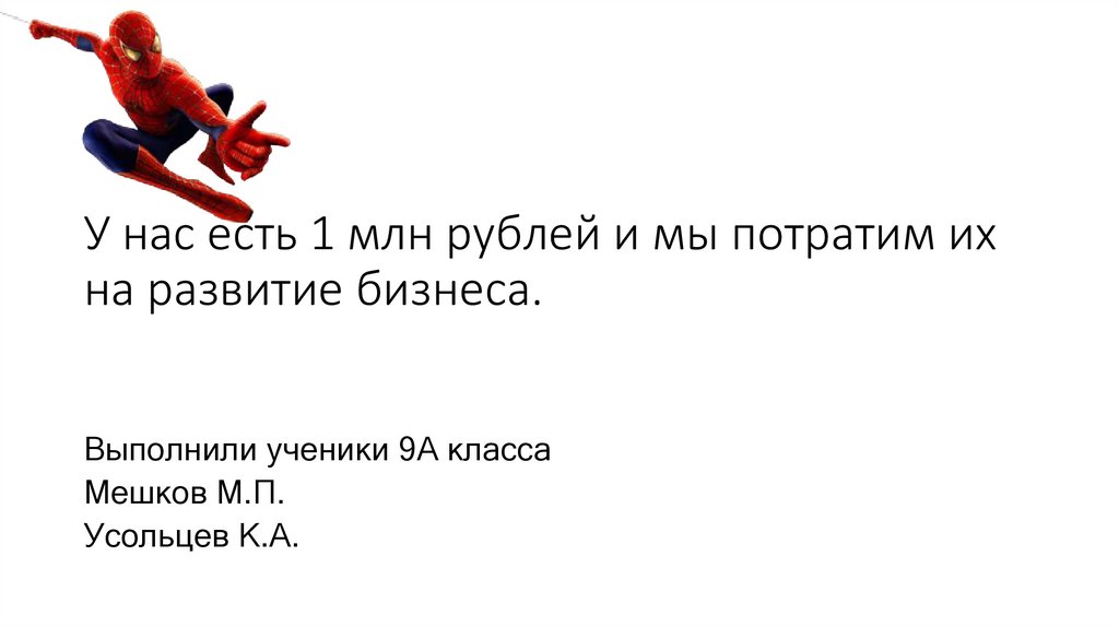 У нас есть 1 млн рублей и мы потратим их на развитие бизнеса.