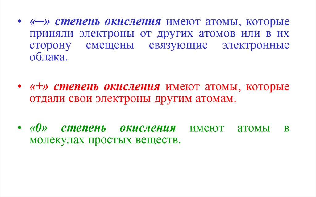 • «─» степень окисления имеют атомы, которыеприняли электроны от других атомов или в их