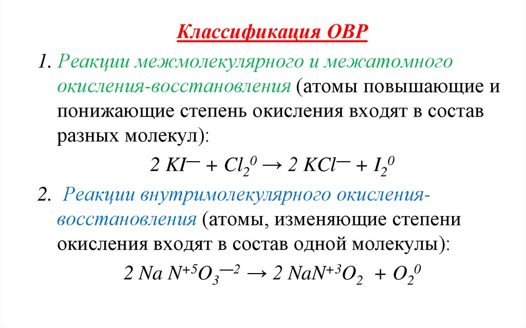 2. Реакции внутримолекулярного окислениявосстановления (атомы, изменяющие степени