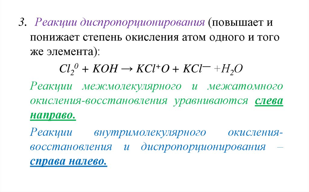 3. Реакции диспропорционирования (повышает ипонижает степень окисления атом одного и того