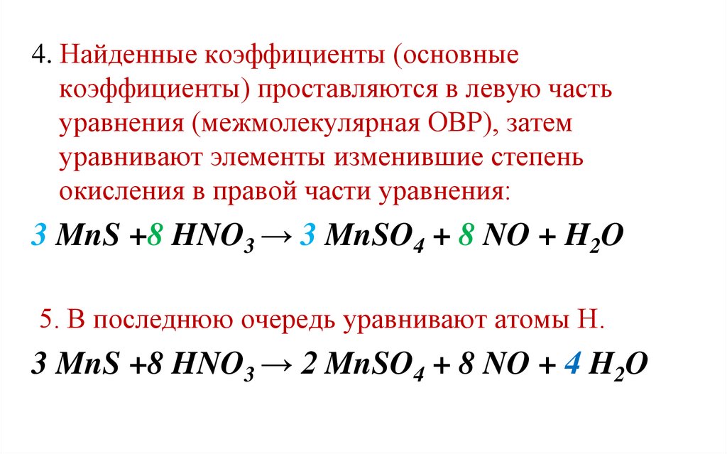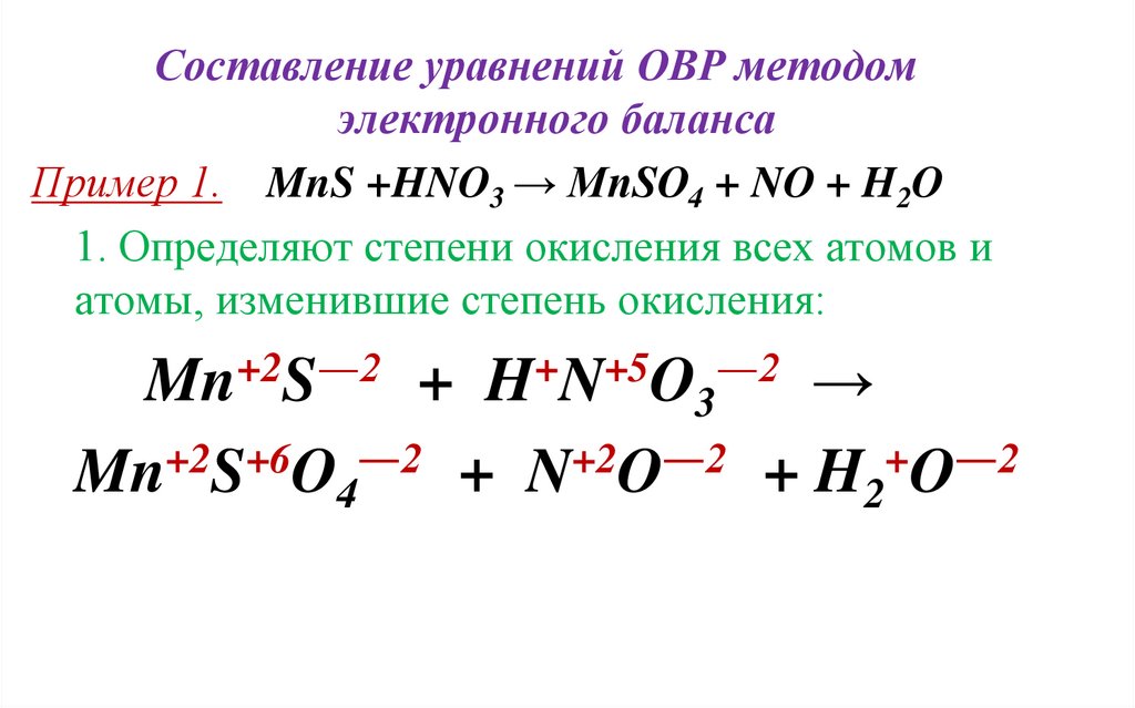 Пример 1. MnS +HNO3 → MnSO4 + NO + H2O