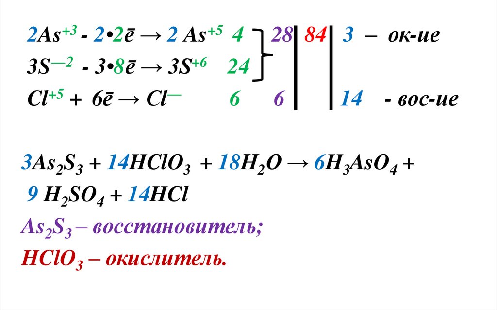2As+3 - 2•2ē → 2 As+5 4 28 84 3 – ок-ие3S―2 - 3•8ē → 3S+6 24