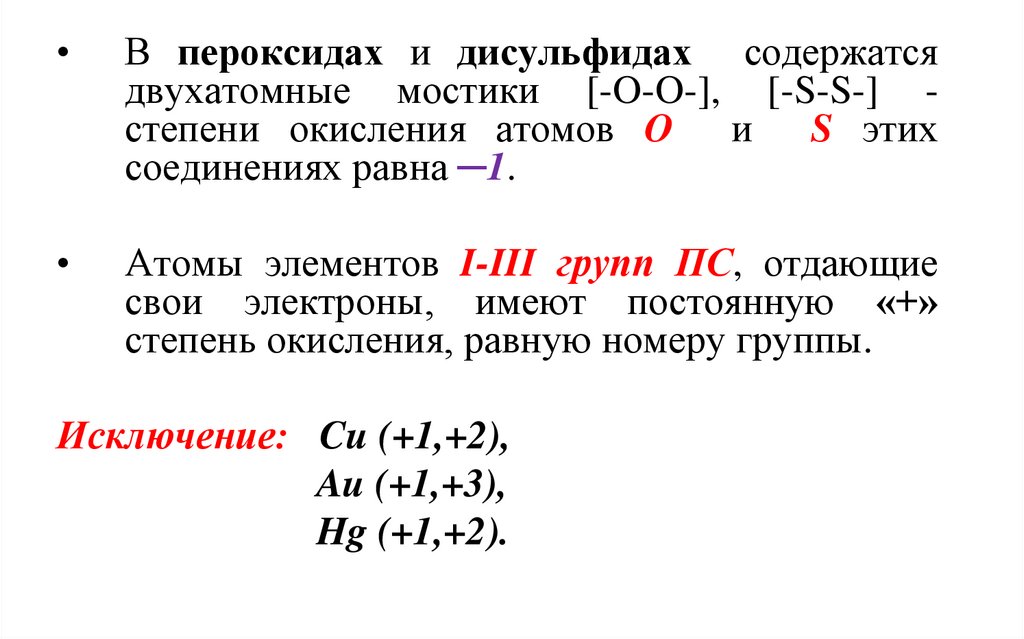 двухатомные мостики [-O-O-], [-S-S-] степени окисления атомов O и S этих