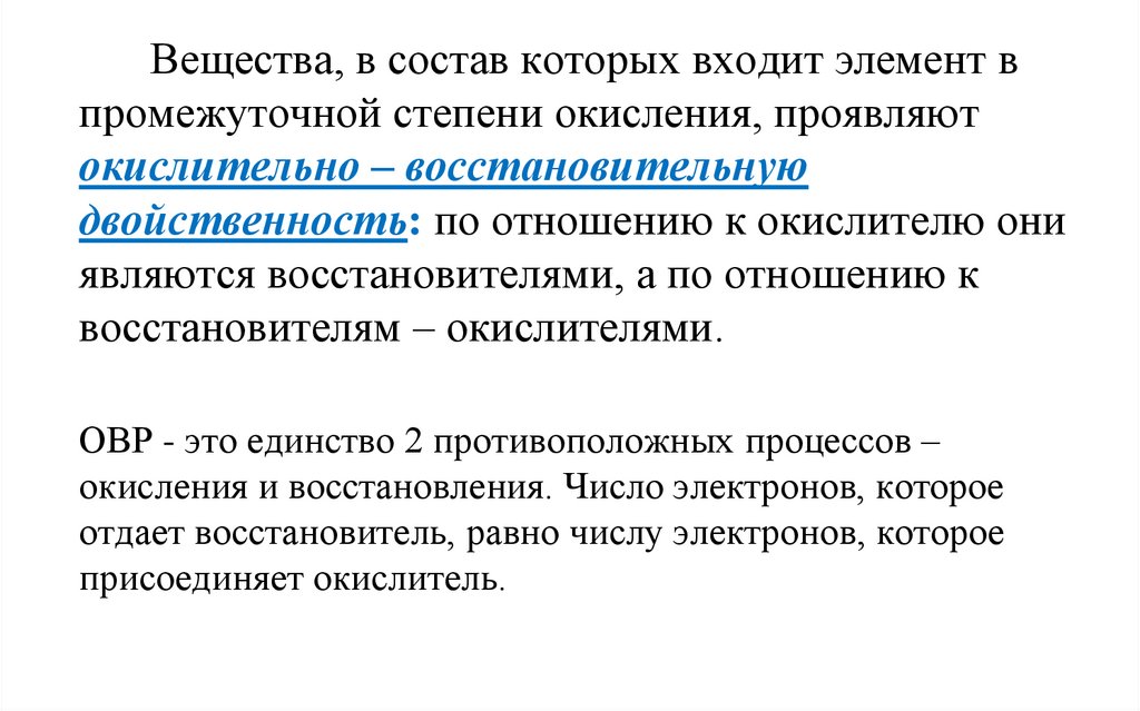 Вещества, в состав которых входит элемент впромежуточной степени окисления, проявляют