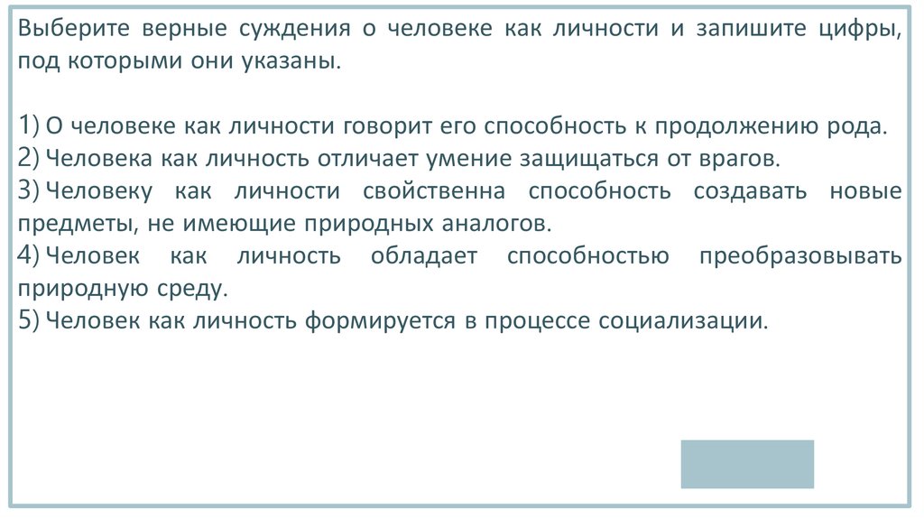 Выберите верные суждения о человеке как личности и запишите цифры,под которыми они указаны.