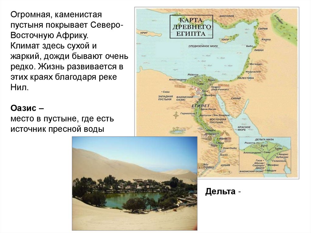 множество рукавов; дельта – буква греч. алфавита 4. Оазис – место в пустыне, где есть источник пресной воды