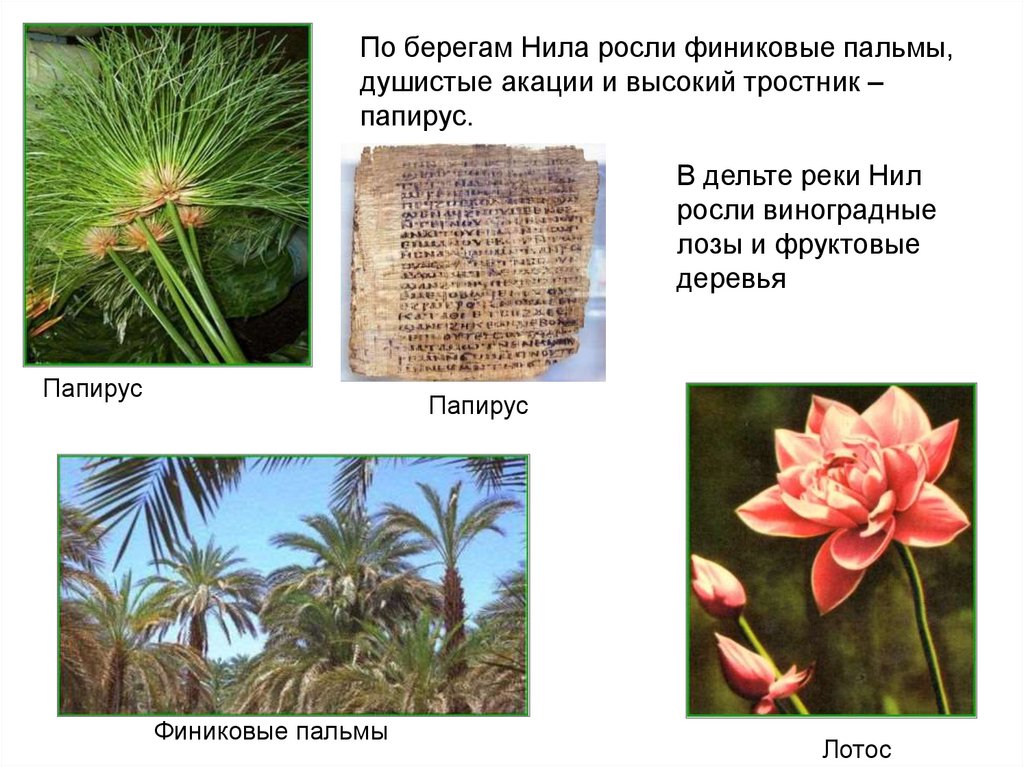 По берегам Нила росли финиковые пальмы,душистые акации и высокий тростник –