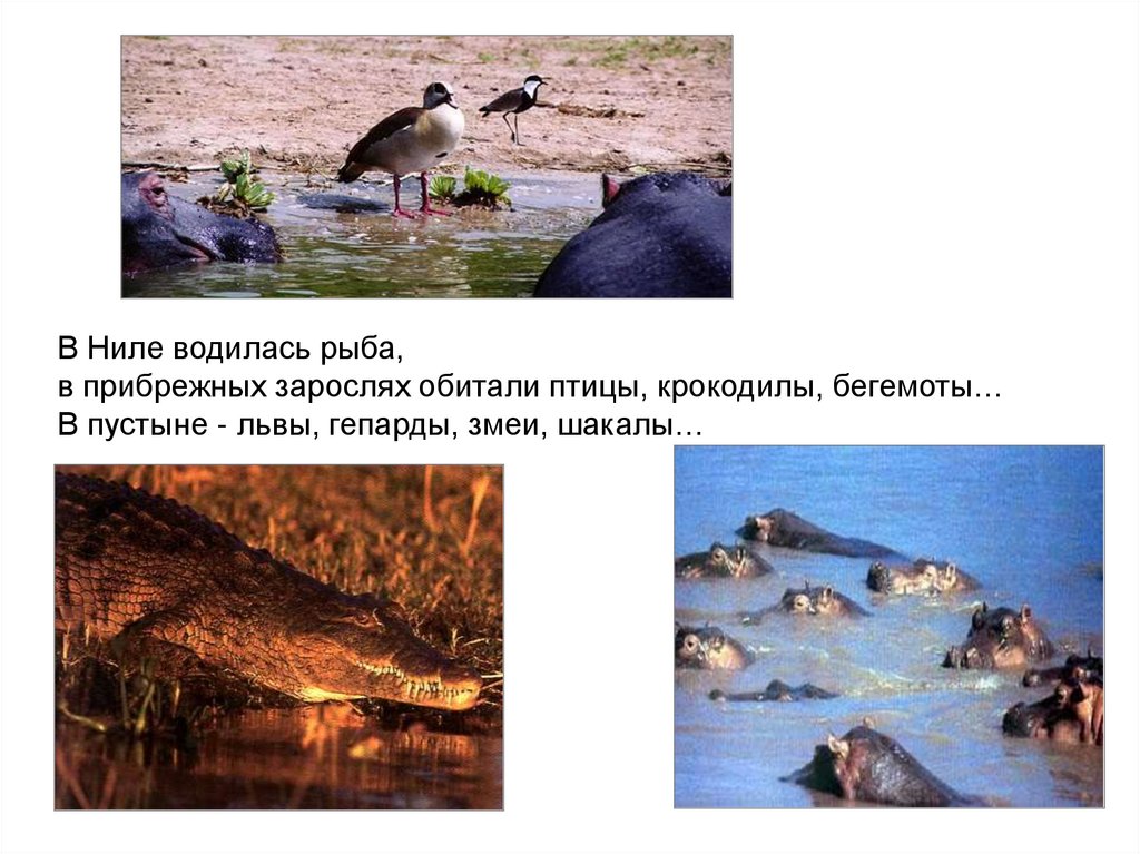 В Ниле водилась рыба,в прибрежных зарослях обитали птицы, крокодилы, бегемоты…