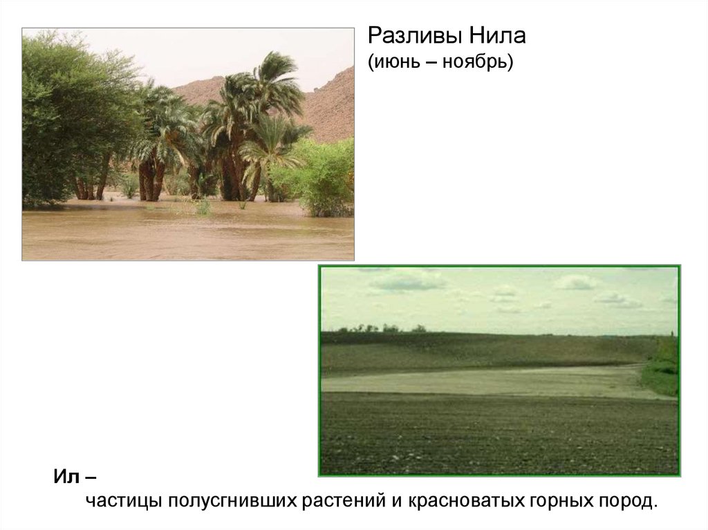 5. Ил – частицы полусгнивших растений и красноватых горных пород.