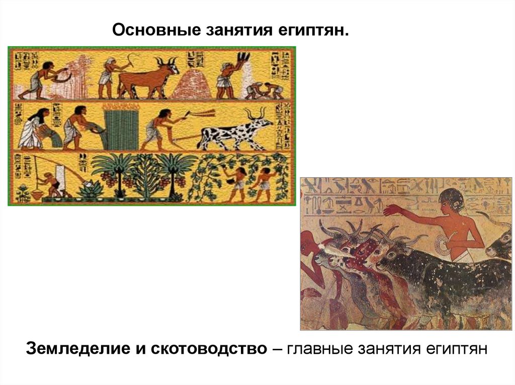Основные занятия египтян.Земледелие и скотоводство – главные занятия египтян