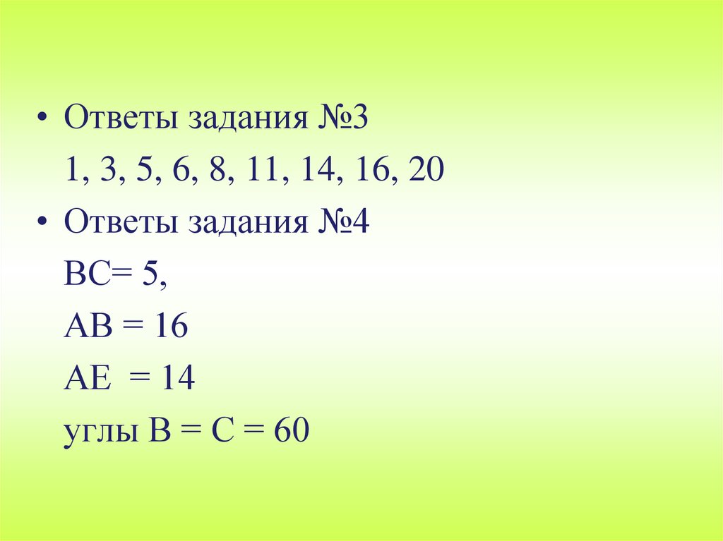 • Ответы задания №31, 3, 5, 6, 8, 11, 14, 16, 20