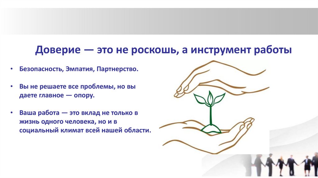Доверие — это не роскошь, а инструмент работы• Безопасность, Эмпатия, Партнерство.