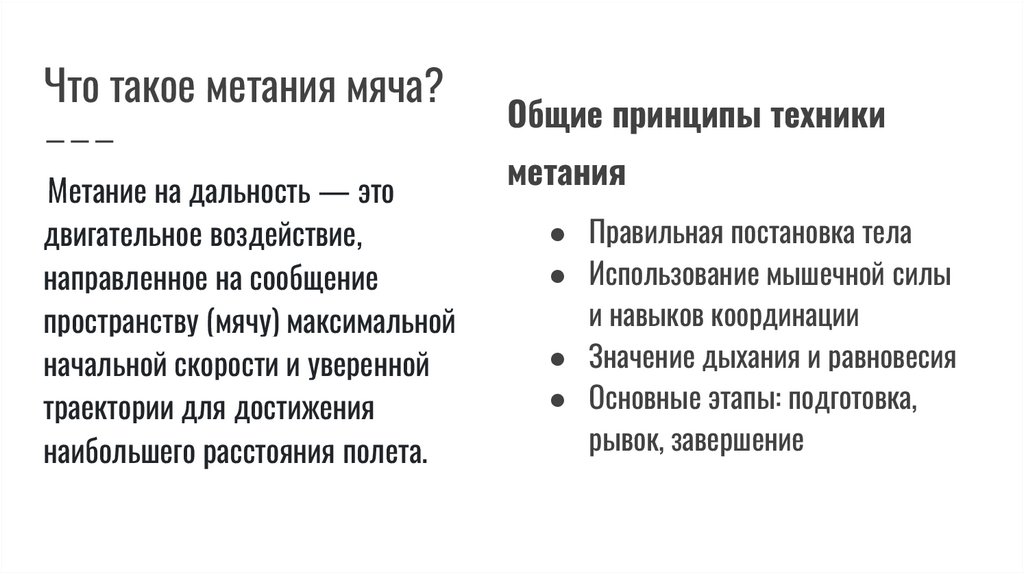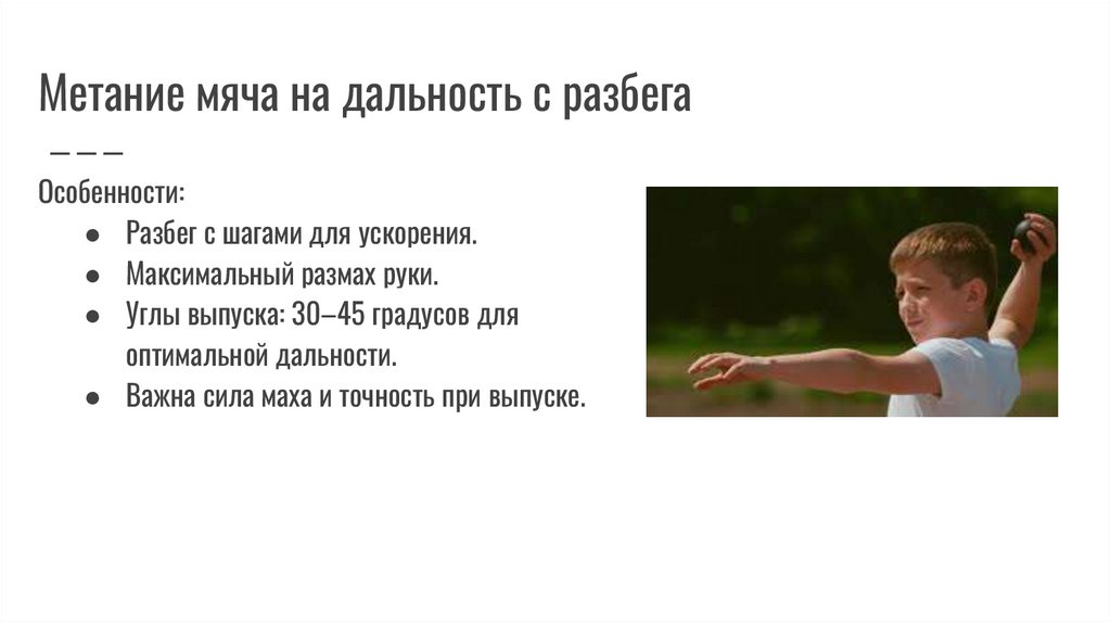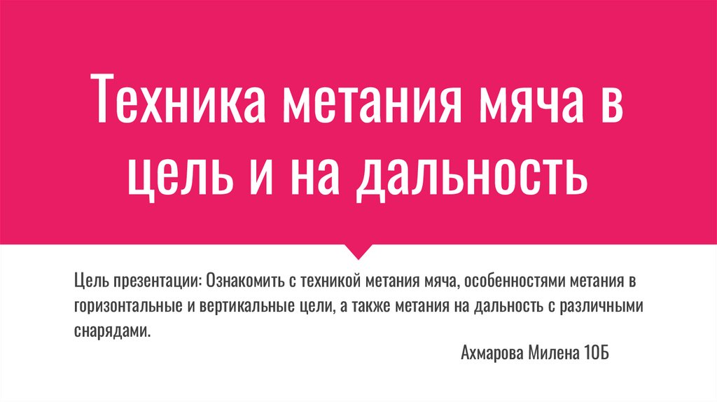 Цель презентации: Ознакомить с техникой метания мяча, особенностями метания в