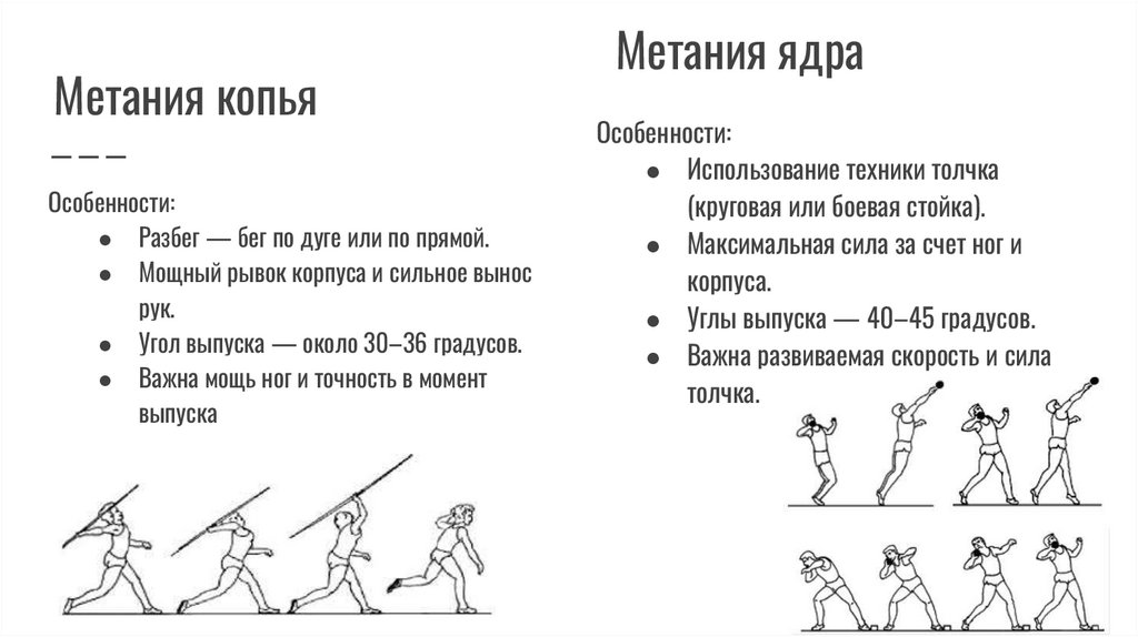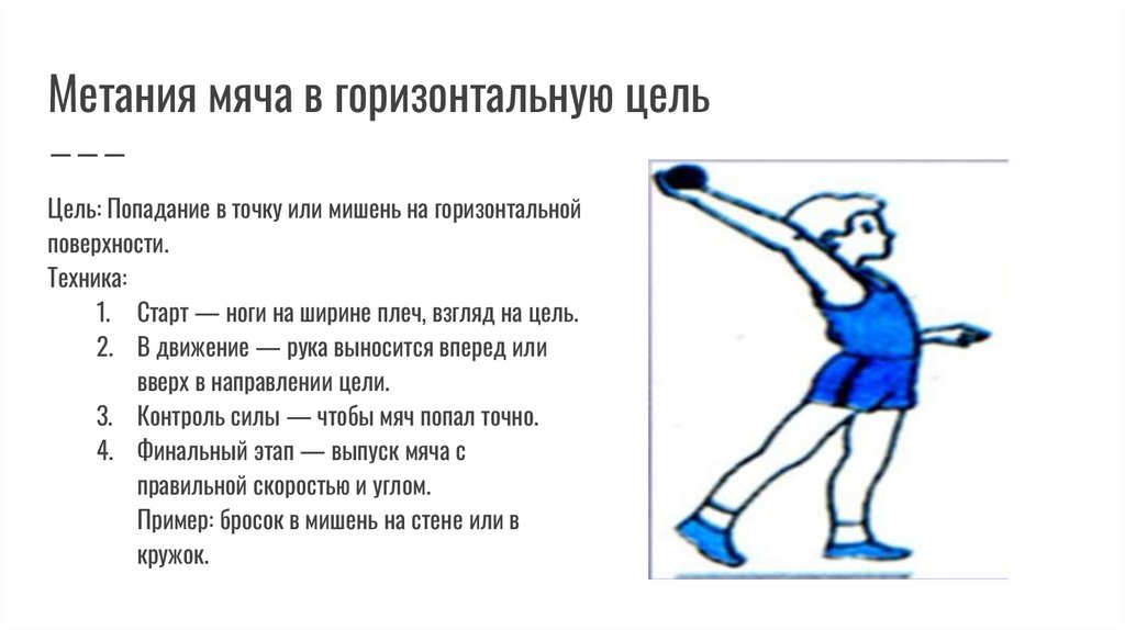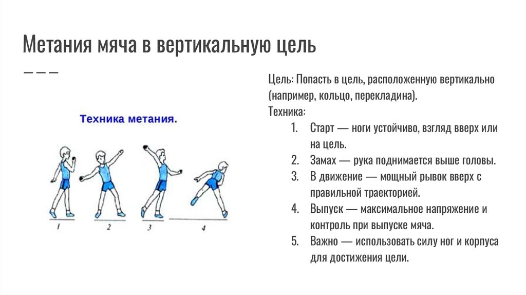 горизонтальные и вертикальные цели, а также метания на дальность с различными