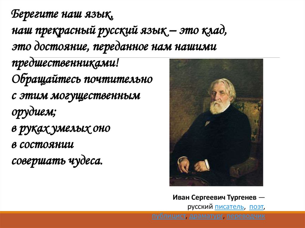 Берегите наш язык,наш прекрасный русский язык – это клад,