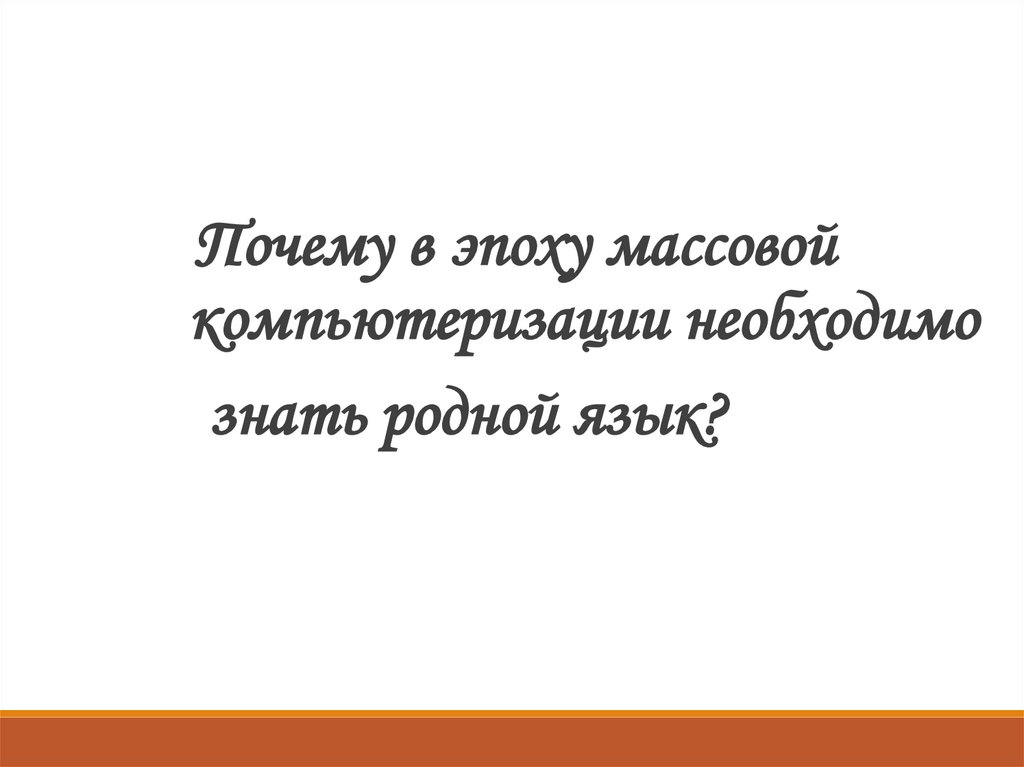 … В переживаемую нами эпоху новейшихтехнологий, массовой компьютеризации,