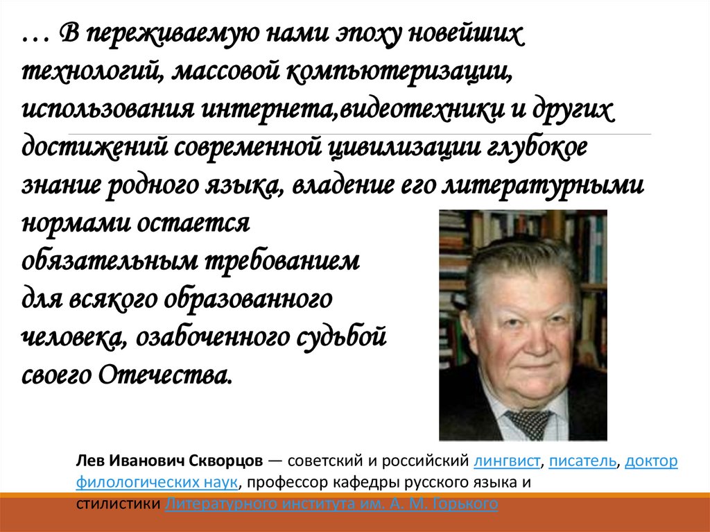 Лев Иванович Скворцов — советский и российский лингвист, писатель, доктор