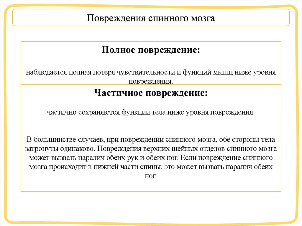 может вызвать паралич обеих рук и обеих ног. Если повреждение спинного