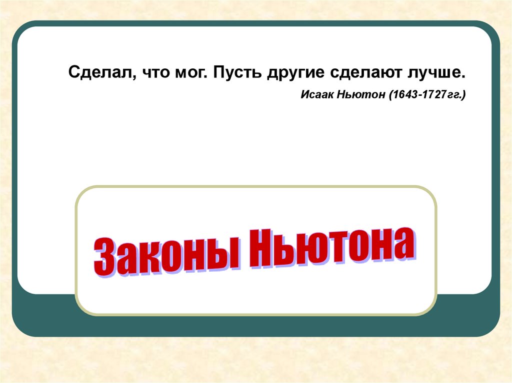 Сделал, что мог. Пусть другие сделают лучше.Исаак Ньютон (1643-1727гг.)