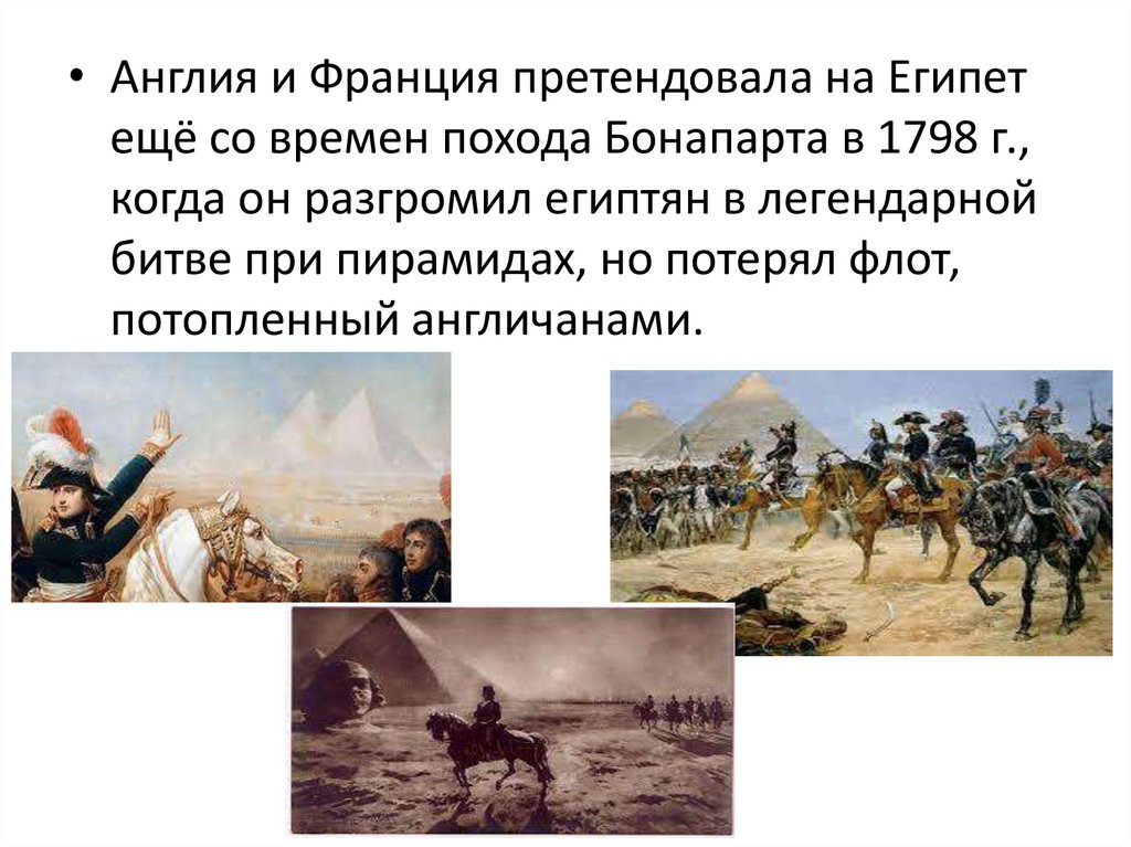 • Англия и Франция претендовала на Египетещё со времен похода Бонапарта в 1798 г.,