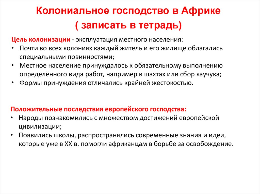 Колониальное господство в Африке( записать в тетрадь)