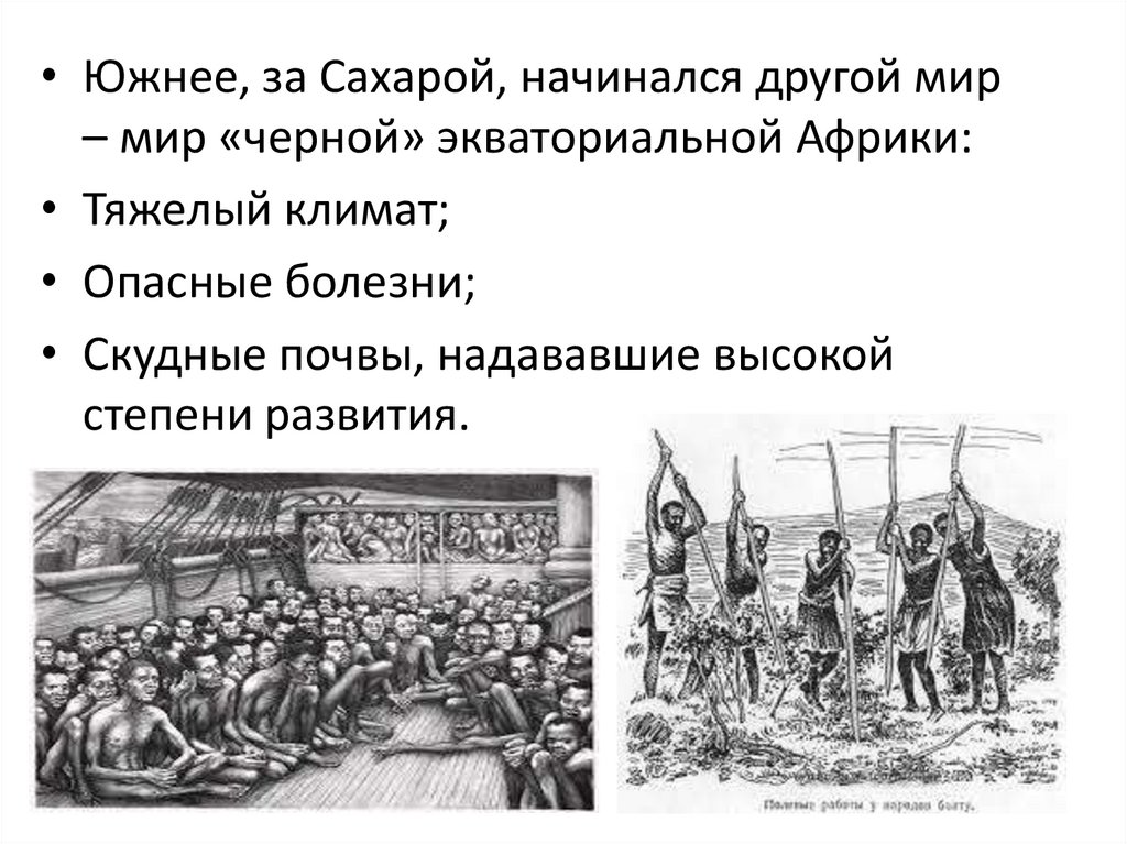 • Южнее, за Сахарой, начинался другой мир– мир «черной» экваториальной Африки: