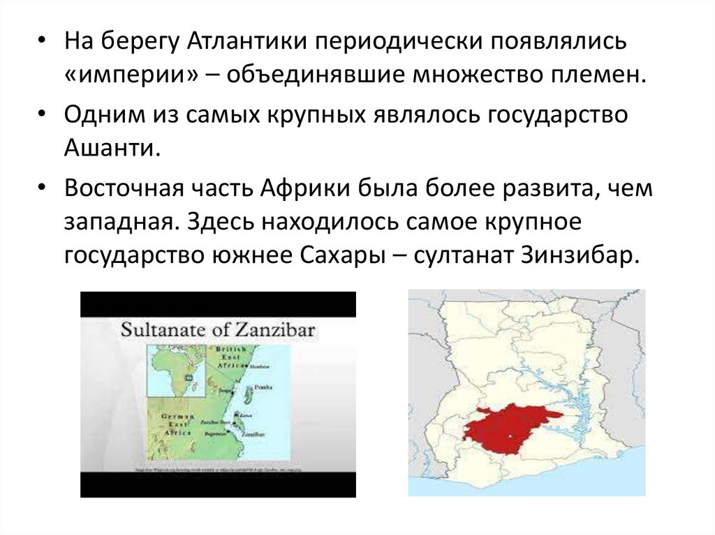 • Восточная часть Африки была более развита, чем