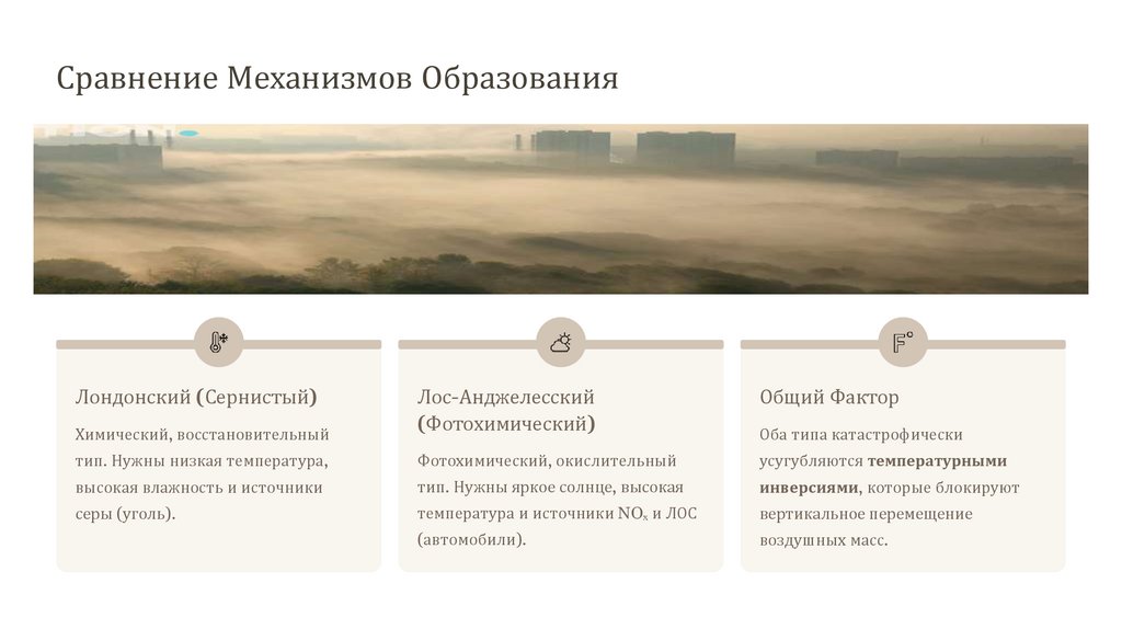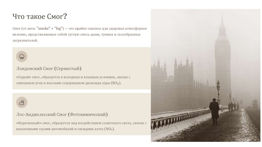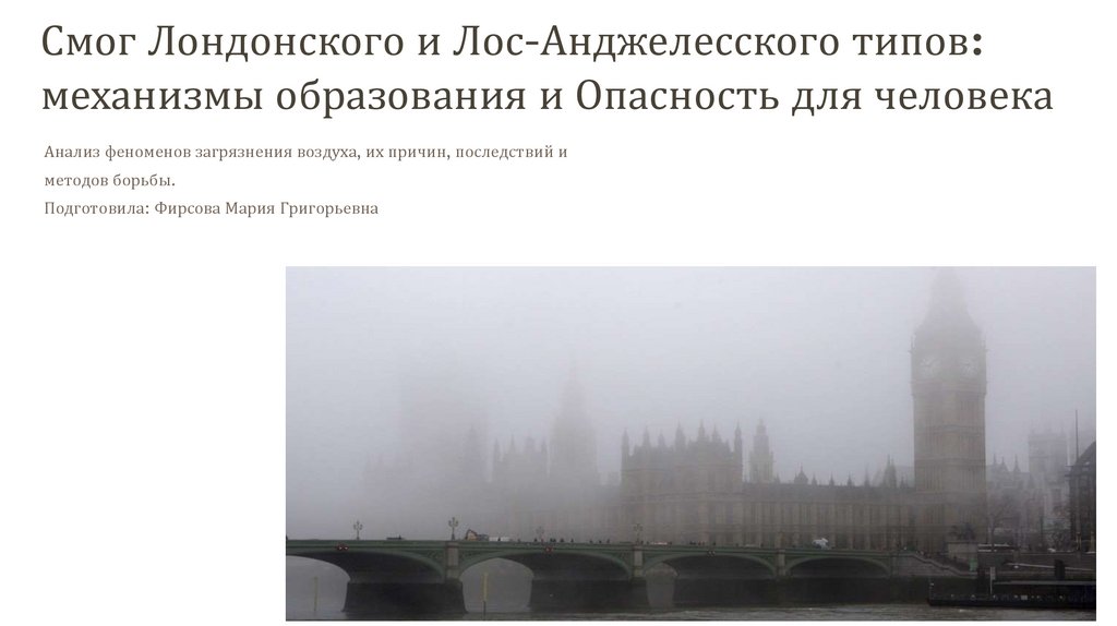Смог Лондонского и Лос-Анджелесского типов:механизмы образования и Опасность для человека