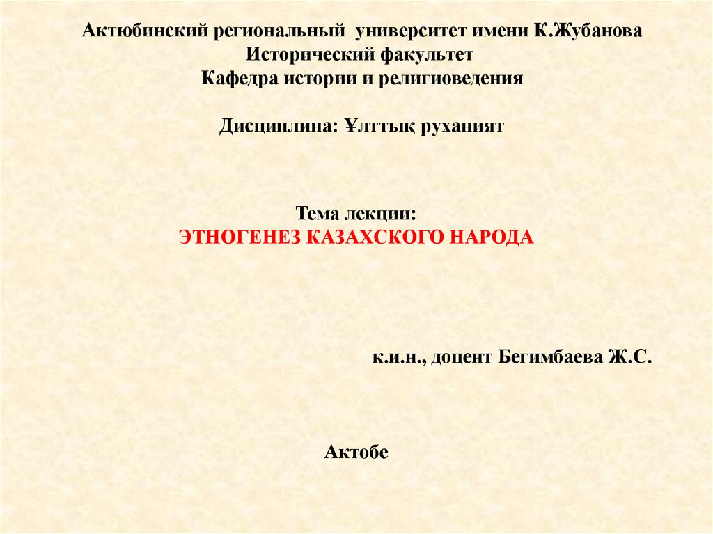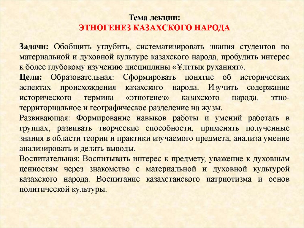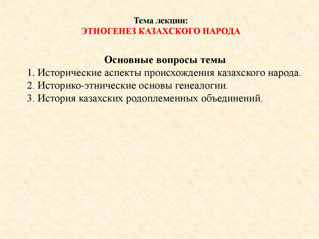 Тема лекции:ЭТНОГЕНЕЗ КАЗАХСКОГО НАРОДА