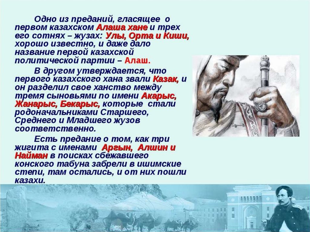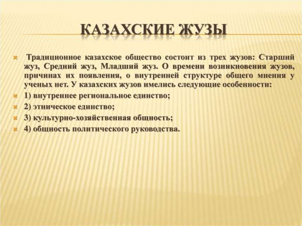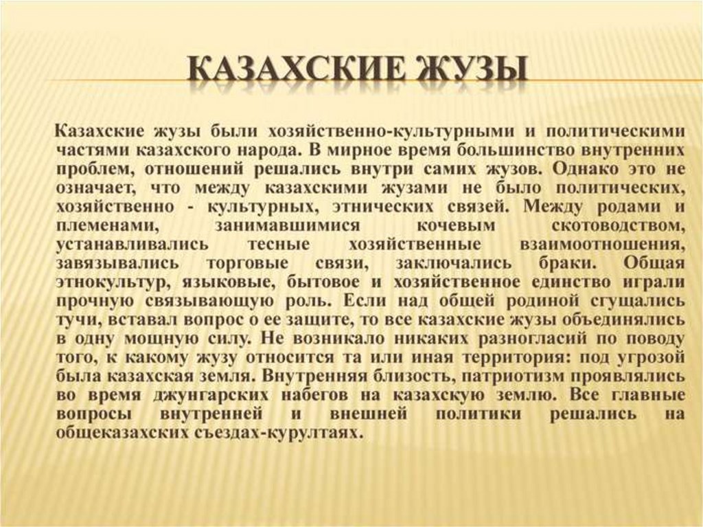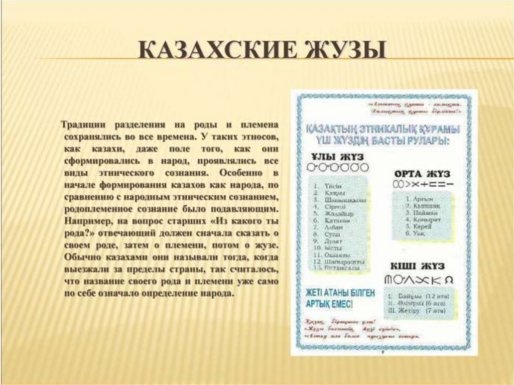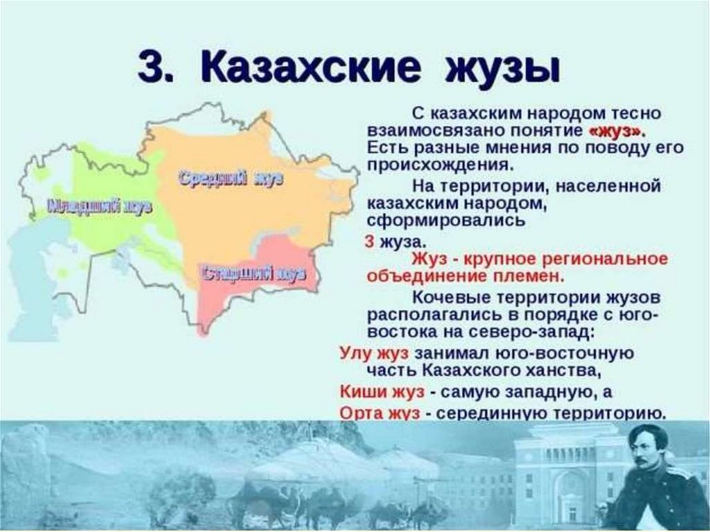 исторического термина «этногенез» казахского народа, этнотерриториальное и географическое разделение на жузы.