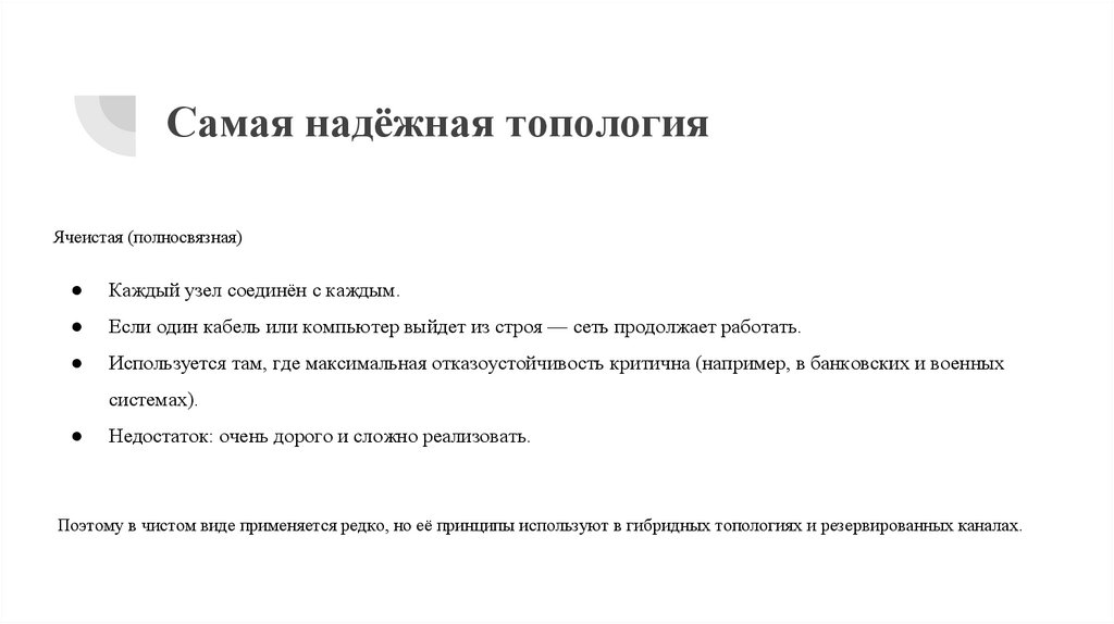 Самая надёжная топологияЯчеистая (полносвязная)