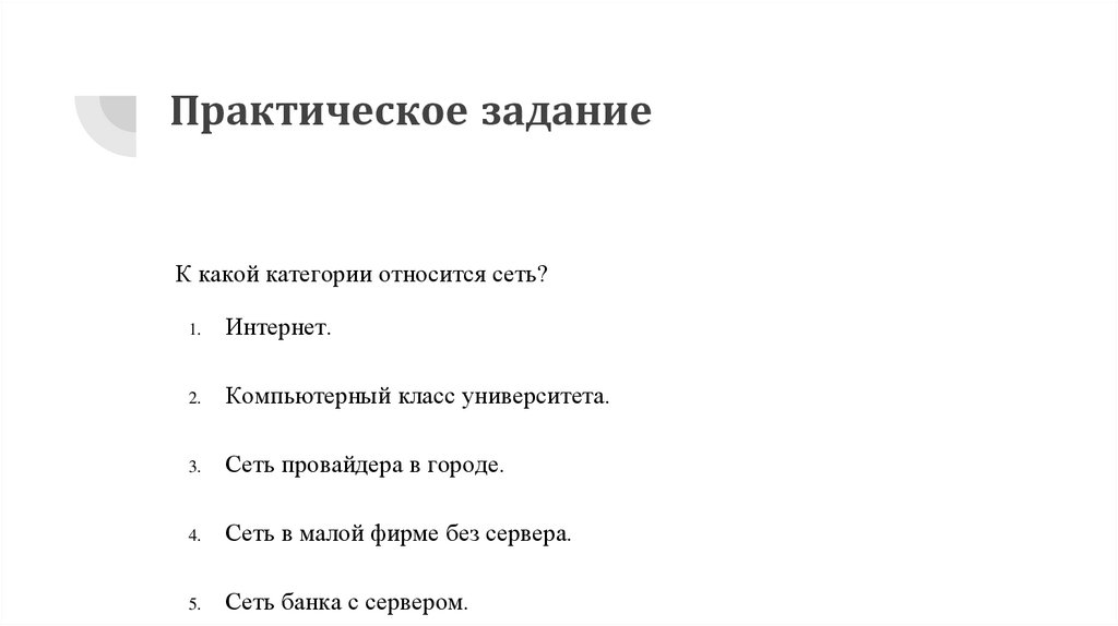 Практическое заданиеК какой категории относится сеть?