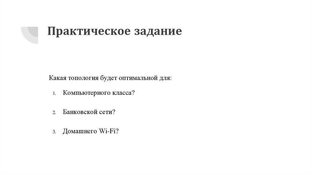 Практическое заданиеКакая топология будет оптимальной для: