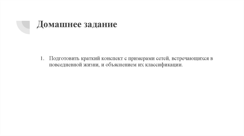 Домашнее задание1. Подготовить краткий конспект с примерами сетей, встречающихся в