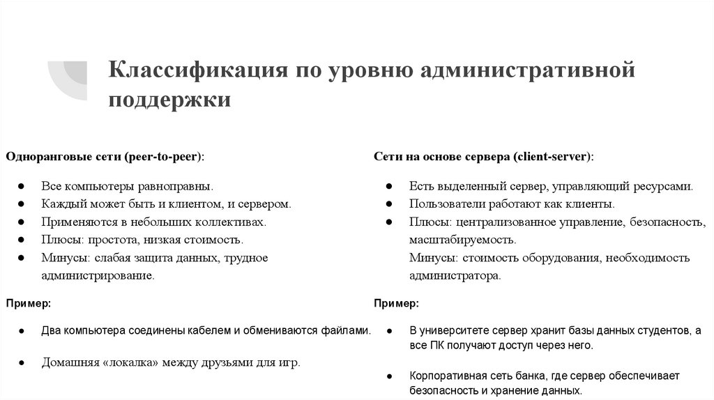 Классификация по уровню административнойподдержки