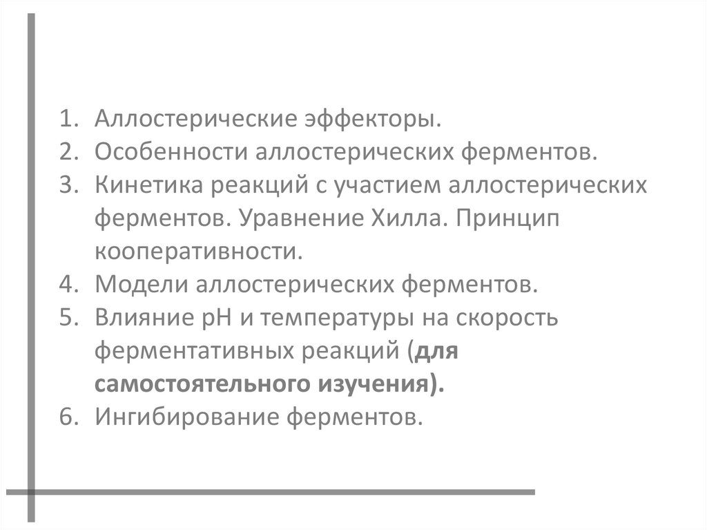 1. Аллостерические эффекторы.2. Особенности аллостерических ферментов.