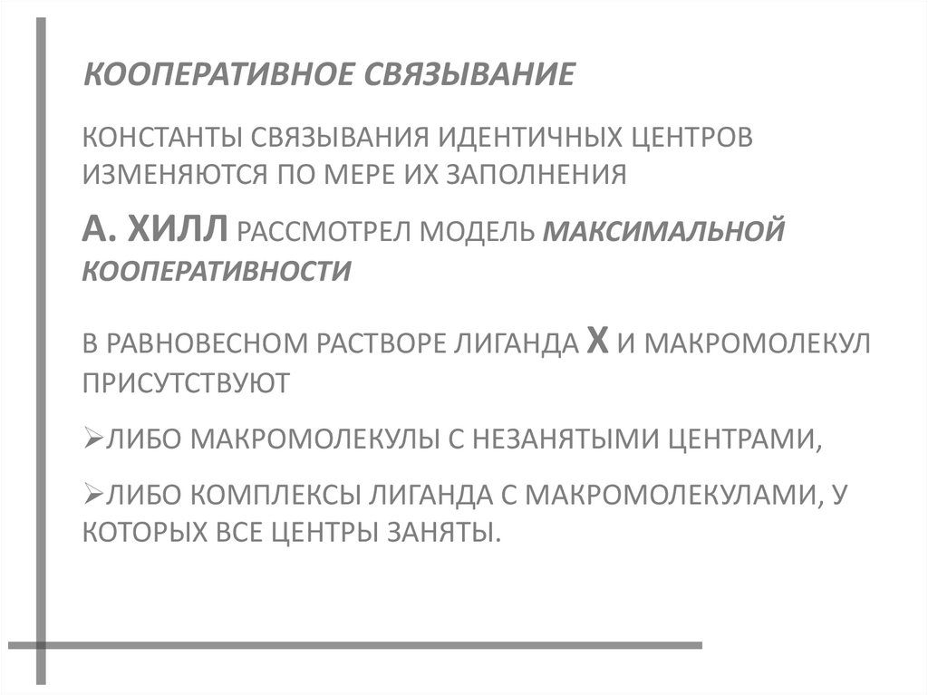 КООПЕРАТИВНОЕ СВЯЗЫВАНИЕКОНСТАНТЫ СВЯЗЫВАНИЯ ИДЕНТИЧНЫХ ЦЕНТРОВ
