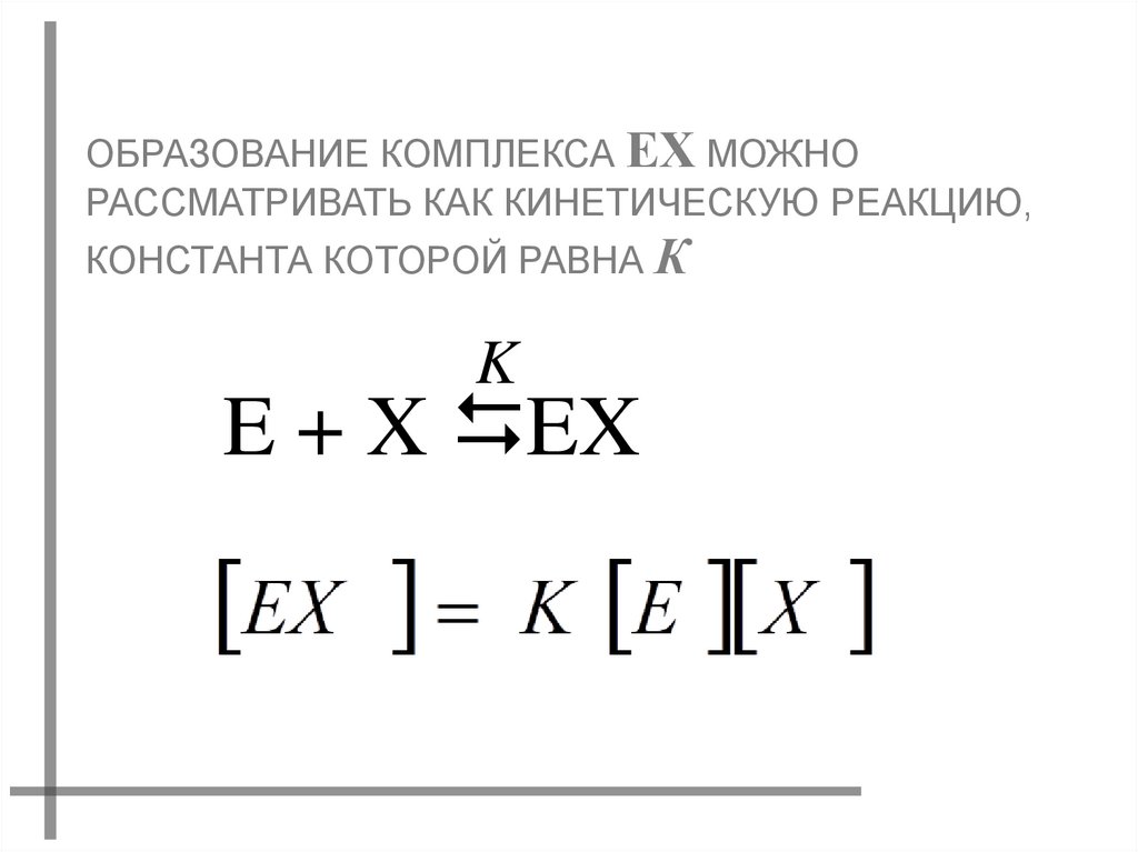ОБРАЗОВАНИЕ КОМПЛЕКСА ЕХ МОЖНОРАССМАТРИВАТЬ КАК КИНЕТИЧЕСКУЮ РЕАКЦИЮ,