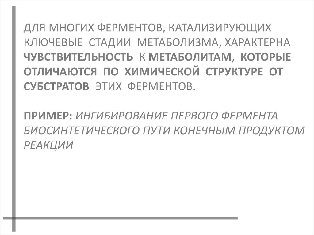 ДЛЯ МНОГИХ ФЕРМЕНТОВ, КАТАЛИЗИРУЮЩИХКЛЮЧЕВЫЕ СТАДИИ МЕТАБОЛИЗМА, ХАРАКТЕРНА