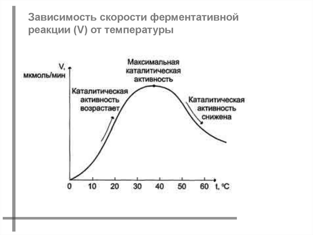 Зависимость скорости ферментативнойреакции (V) от температуры