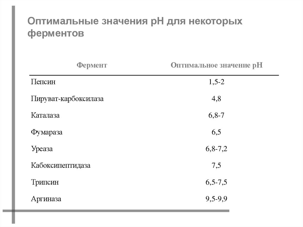 Оптимальные значения рН для некоторыхферментов
