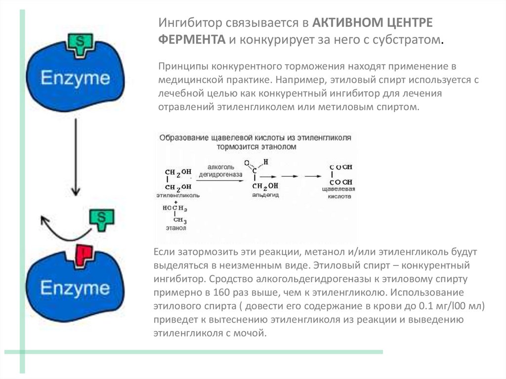 выделяться в неизменным виде. Этиловый спирт – конкурентный