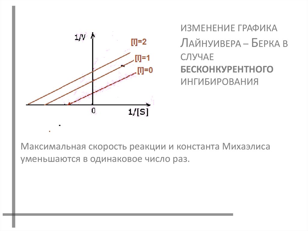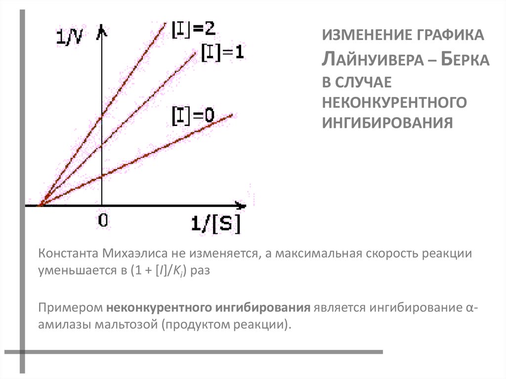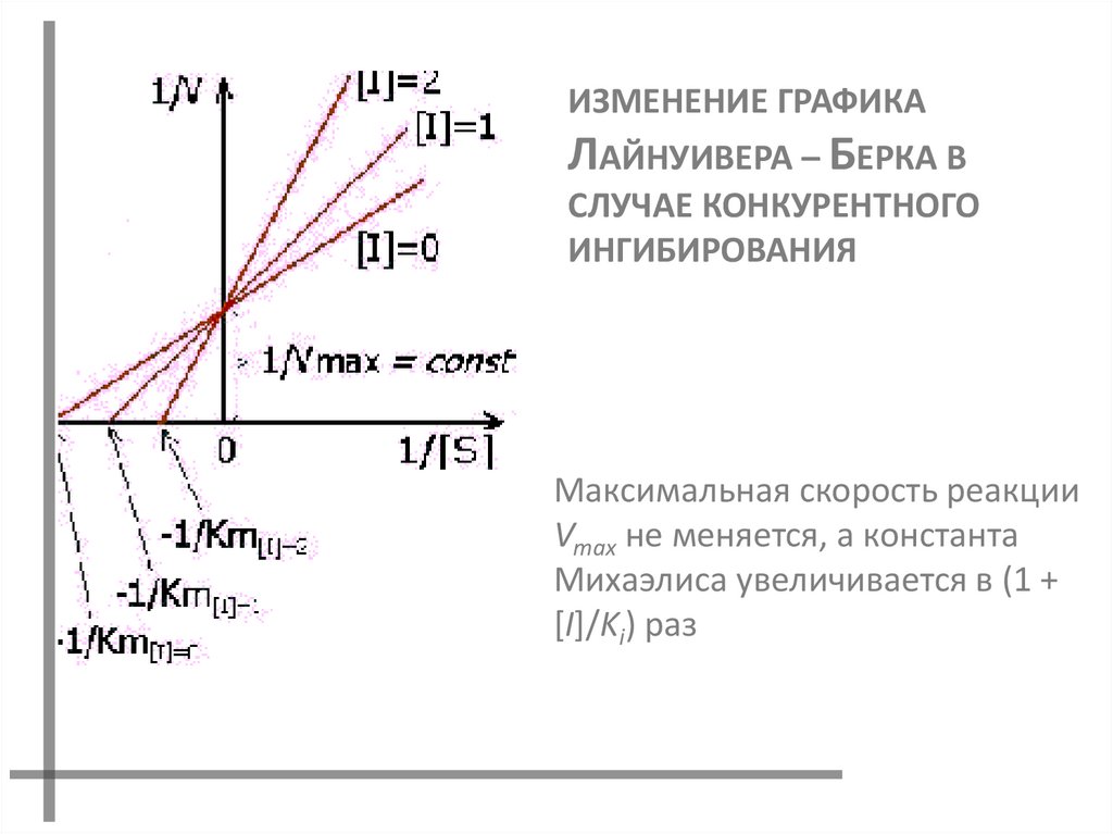 Константа Михаэлиса не изменяется, а максимальная скорость реакции
