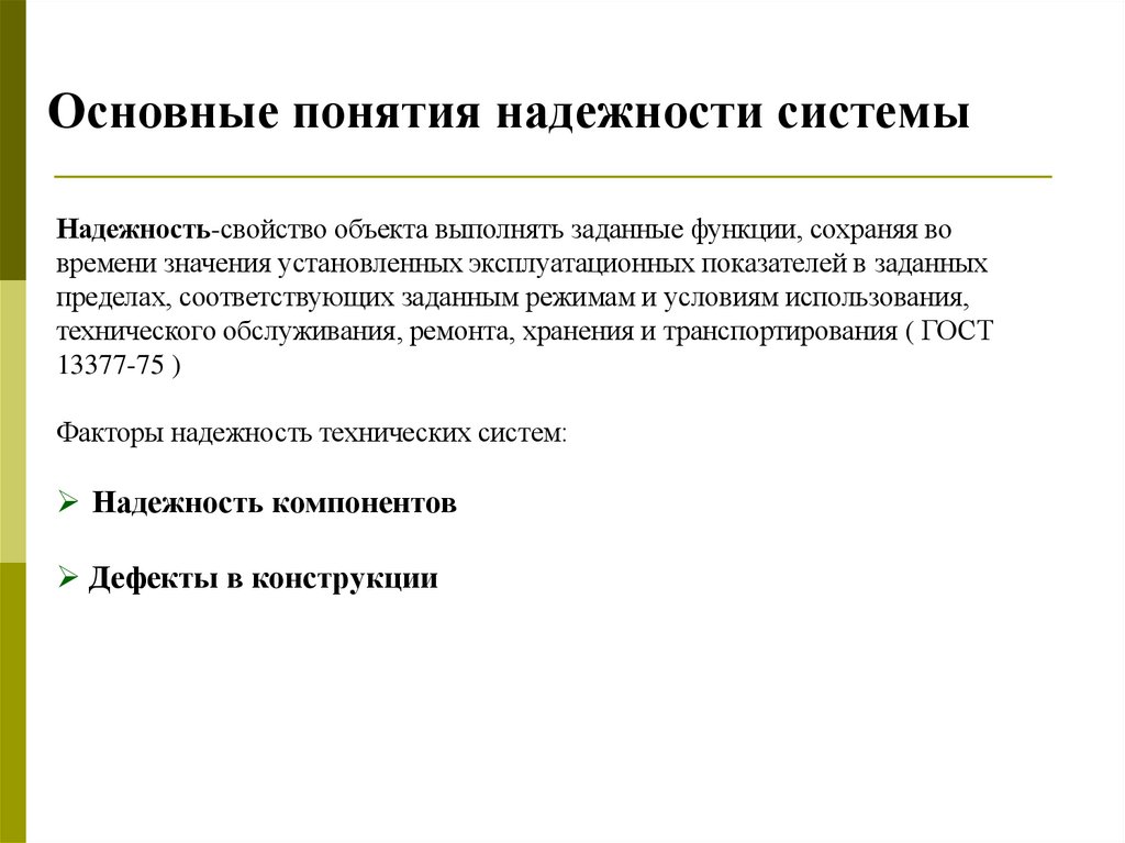 Основные понятия надежности системыНадежность-свойство объекта выполнять заданные функции, сохраняя во