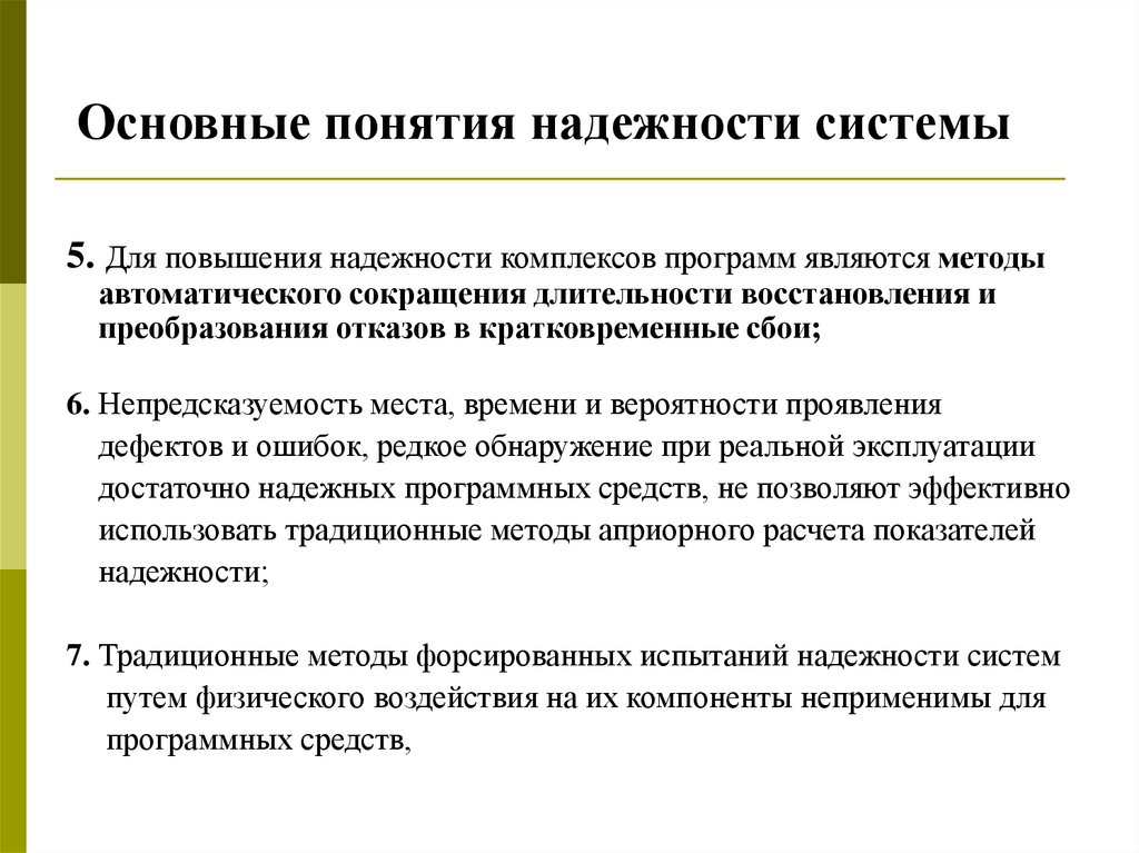 Основные понятия надежности системы5. Для повышения надежности комплексов программ являются методы