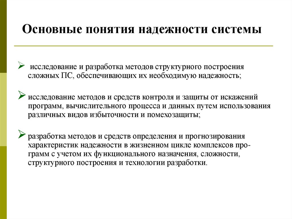 Основные понятия надежности системыисследование и разработка методов структурного построения