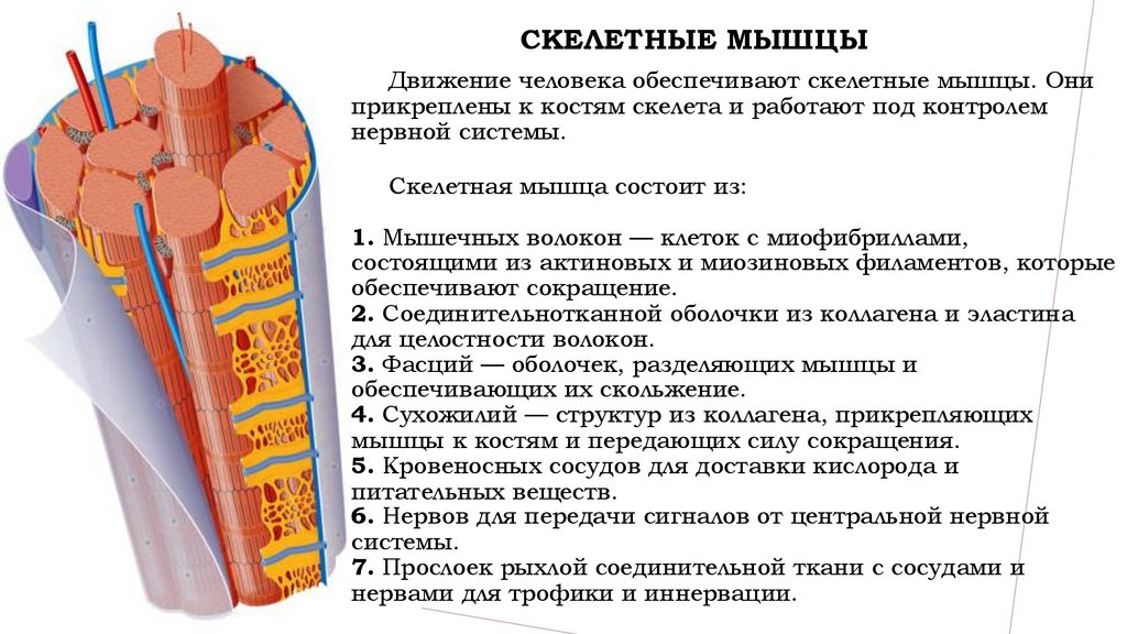 СКЕЛЕТНЫЕ МЫШЦЫДвижение человека обеспечивают скелетные мышцы. Они