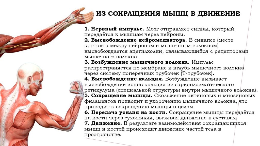 ИЗ СОКРАЩЕНИЯ МЫШЦ В ДВИЖЕНИЕ М1. Нервный импульс. Мозг отправляет сигнал, который