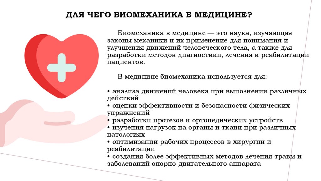 ДЛЯ ЧЕГО БИОМЕХАНИКА В МЕДИЦИНЕ?Биомеханика в медицине — это наука, изучающая