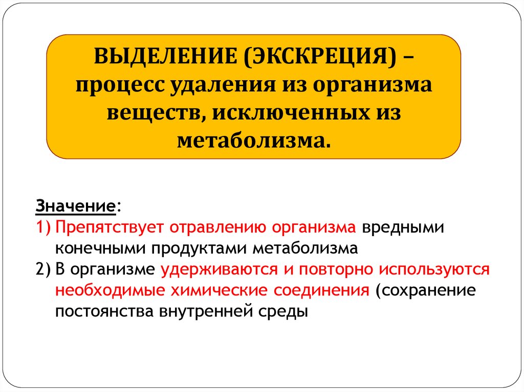ВЫДЕЛЕНИЕ (ЭКСКРЕЦИЯ) –процесс удаления из организма
